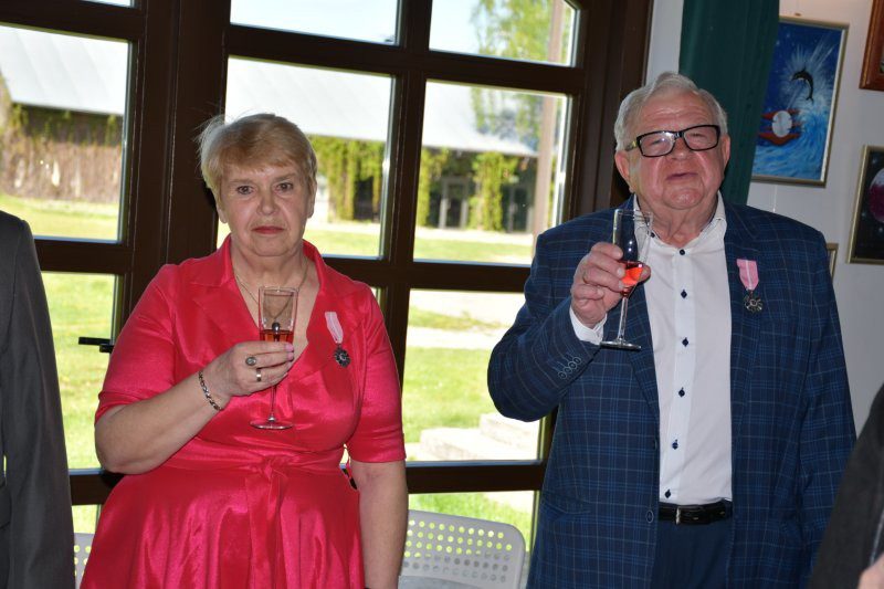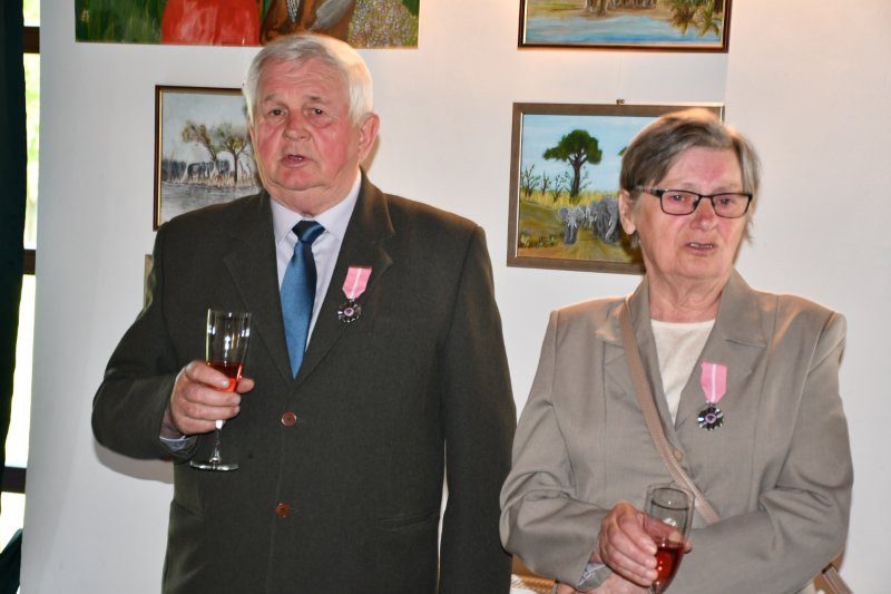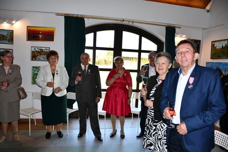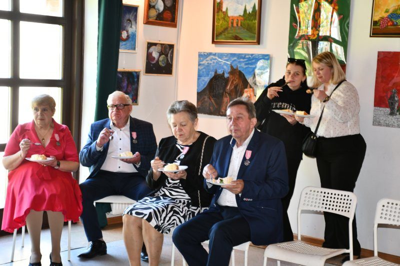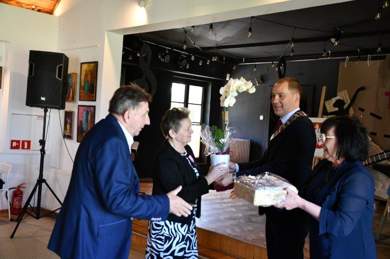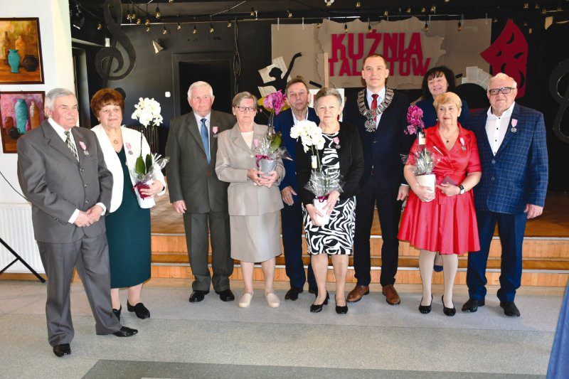 Z tej okazji były serdeczne życzenia, kwiaty i samorządowe prezenty oraz szampański toast i tradycyjnie odśpiewanio jubilatom – po staropolsku – „Sto lat”, był także tort z okazjonalnym tytułem „50-lecie Pożycia Małżeńskiego”. Pamiątką są okolicznościowe zdjęcia.