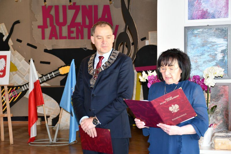 -… Rocznice ślubu bywają obchodzone przez szczęśliwe pary bardzo uroczyście. To jest w istocie święto. Święto miłości, zaufania, wyrozumiałości i wzajemnego oddania. Dziś jest Wasze osobiste święto. Wasza małżeńska codzienność, pracowitość, trud i poświecenie stają się sprawa wagi państwowej… Osoby, które przeżyły w swoim związku 50 lat, są nagradzane specjalnym medalem przyznanym przez Prezydenta Rzeczypospolitej Polskiej… Na żaden medal nie pracuje się tak długo – przeszło 18.250 nocy i dni… W imieniu Prezydenta RP wręczy go Państwu Wójt Gminy Radziejowice Artur Jankowski…- powiedziała Kierownik USC Małgorzata Strzemieczna. Poinformowała także, że Prezydent Rzeczypospolitej Polskiej Andrzej Duda, na wniosek Wójta Gminy Radziejowice uhonorował radziejowickich jubilatów specjalnym medalem: „Za Długoletnie Pożycie Małżeńskie”.